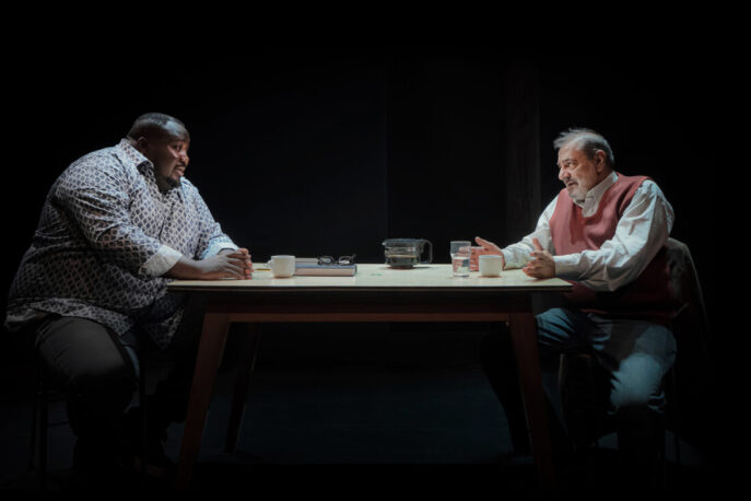 Τη μετάφραση και τη σκηνοθεσία υπογράφει ο Αντώνης Καφετζόπουλος, ο οποίος συμπρωταγωνιστεί με τον Ζερόμ Καλούτα σε μια σπαρακτική σύγκρουση δύο αντιδιαμετρικών κόσμων — πίστης και απόγνωσης, φωτός και σκότους. Ένα έργο λόγου και εσωτερικής έντασης, μια υπαρξιακή μονομαχία για το τι αξίζει να κρατήσει έναν άνθρωπο στη ζωή.