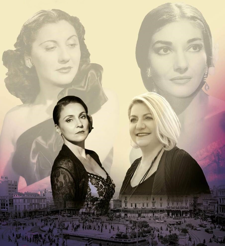 Η Μαρία Κάλλας, η φωνή του κόσμου, «συναντά» τη φωνή της Ελλάδας, Σοφία Βέμπο, τη βραδιά των διαδηλώσεων για το «Ένα-Ένα Τέσσερα»- «Βία και νοθεία», στο πιάνο/μπαρ του ξενοδοχείου «Ακροπόλ Παλλάς».