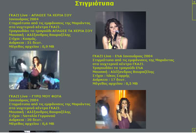 μας για τις τηλεοπτικές εμφανίσεις της, τις συναυλίες της και