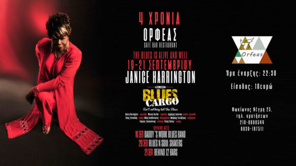 Η Janice Harrington και οι Blues Cargo ξαναβρίσκονται λοιπόν μαζί στην σκηνή του Ορφέα για 3η φορά μέσα σε 20 χρόνια για 3 ημέρες… and the Blues is alive and Well!!