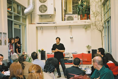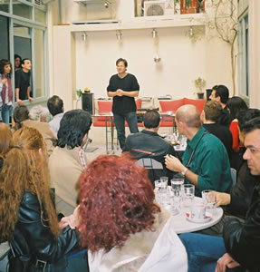 Η παρουσίαση της καινούργιας δουλειάς του Θανάση Παπακωνσταντίνου ταιριάζει απόλυτα με την προσωπικότητα του... Στο τραπέζι της παρουσίασης δεν κάθισε κανένας! Ήταν τοποθετημένο εκεί το στερεοφωνικό και όταν η παρουσίαση ξεκίνησε καταλάβαμε όλοι ότι θα είναι μία ακρόαση. Η εντύπωση που έλαβα, ήταν ότι το έργο είναι αυτό που μας ενδιαφέρει και μέσα από αυτό θα μιλήσουμε, αυτός είναι ο πρωταγωνιστής και οφείλουμε να του αφήσουμε το χώρο ανοιχτό. Ο τραγουδοποιός μας είπε ότι θα ακούσουμε κάποια κομμάτια και μετά αν έχουμε κάτι μπορούμε να ρωτήσουμε. Ακούσαμε λίγα επιλεγμένα κομμάτια από αυτή την καινούργια δουλειά που είναι διαφορετική από τις προηγούμενες και μοιάζει σαν να προχωράει παρακάτω. Θυμίζει στιγμές από τις live εμφανίσεις με τους αυτοσχεδιασμούς και την εναλλαγή των τραγουδιστών αλλά κυρίως περιέχει κατασκευασμένα δομικά στοιχεία της μουσικής που ο συνθέτης προβάλει με αρκετή ένταση. Με διαφορετική διάθεση περισσότερο εσωτερική, σαν να έχει μπει βαθιά στο τούνελ (της ψυχής ίσως;) ο Θανάσης Παπακωνσταντίνου θέλει να κάνει το ταξίδι αλλά να έχει και ένα σημείο αναφοράς που θα γυρίσει. Επειδή όπως είπε και ο ίδιος τα λόγια τον περιορίζουν στο συγκεκριμένο cd η μουσική υπερισχύει και γράφει επηρεασμένος από τους μουσικούς ήχους που ακούει τα τελευταία χρόνια. Ο υπολογιστής αποτελεί σύμμαχο αλλά και αντίπαλο, το αναπάντεχο και το τυχαίο είναι καταστάσεις που χαρακτηρίζουν αυτή τη δουλειά, που ο δημιουργός της αναρωτιέται αν η μουσική αυτή έχει τη συναισθηματική φόρτιση που χρειάζεται για να μπορεί να φιλά τα μέτωπα των ανθρώπων.