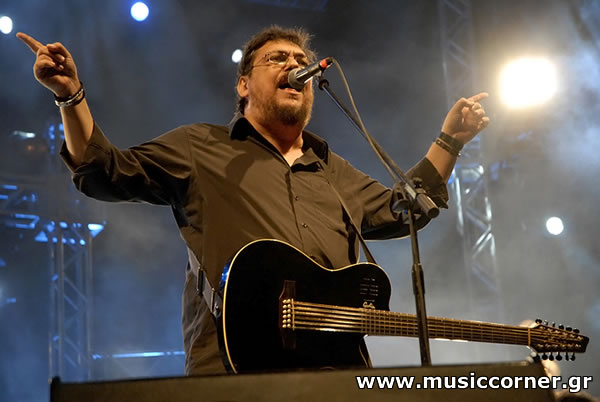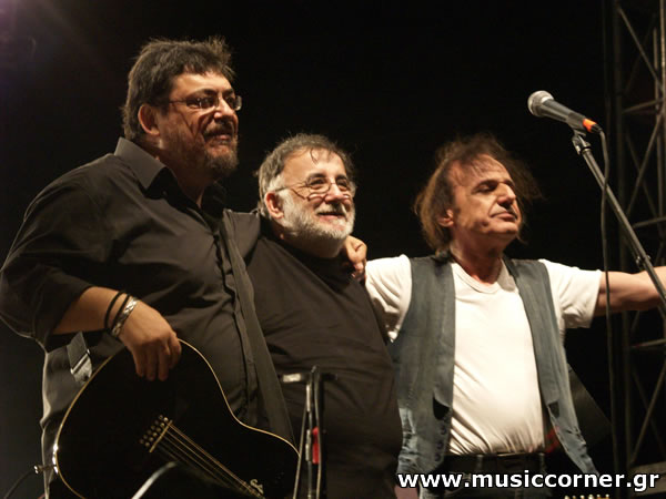 Τετάρτη 4 Ιουνίου Με το χάρισμα, την ικανότητα και την δεξιοτεχνία να παρουσιάζει συνεχώς νέα τραγούδια που έχουν το καθένα την σφραγίδα του δημιουργού τους αλλά δεν μοιάζουν μεταξύ τους καθόλου, τι άλλο να πούμε για τον Λαυρέντη Μαχαιρίτσα; Με την ζωντάνια, τη φρεσκάδα, τη νεανική ματιά που τον διακρίνουν, κάνει τα 20 χρόνια πορείας στη μουσική σκηνή να μοιάζουν μια στιγμή ...μια ανάσα! Είναι όμως δυνατόν να χωρέσεις σε μία και μόνη συναυλία τραγούδια μιας ζωής; Γιαυτό το ραντεβού μας ήταν διπλό! Για μια ακόμα φορά ανεβήκαμε πολύ νωρίς στο Θέατρο Λυκαβηττού, για να πετύχουμε μια καλύτερη θέση εκεί μπροστά στη σκηνή. Διαπίστωσαμε με χαρά πως ο κόσμος σχημάτιζε ήδη ουρά στα ταμεία και στην είσοδο, αλλά η οργάνωση όλων ήταν τόσο σωστά μελετημένη και προσεγμένη που τα πάντα κύλησαν εξαιρετικά καλά. Κανένα πρόβλημα στην "πόρτα", ουδεμία δυσκολία πουθενά. Εκτός βέβαια από την κούραση της ορθοστασίας κατά τη διάρκεια της συναυλίας (για όσους έχουν λίγα παραπάνω χρονάκια στην πλάτη τους, που όμως συνεχίζουν να ...αναπνέουν νεανικά)! Συνεπείς, 5 μόλις λεπτά μετά τις 9μμ, όλοι στις θέσεις τους (καλλιτέχνες, μουσική και κοινό) και μια βραδιά με πολλή μουσική, πολλή θετική ενέργεια, πολύ κέφι και πολλή καλή διάθεση ξεκίνησε. Πρώτος ήρθε στο μικρόφωνο ο Αλκης Κωνσταντόπουλος, τραγουδώντας μας το "σουξέ" του, αλλά και "Μια γοργόνα στ' ακρογιάλι" σε διασκευή. Αμέσως μετά ένα ακόμα νέο σχήμα πήρε το μικρόφωνο. Οι WC τραγούδησαν την "Φάλαινα", συμμετοχή του Λαυρέντη Μαχαιρίτσα στο Φεστιβάλ Θεσσαλονίκης 2005. Με αμείωτο κέφι ανέβηκε στη σκηνή ο οικοδεσπότης για να μας καλωσορίσει. Πριν ανοιγοκλείσουμε τα μάτια ειχαμε πάλι μπροστά μας τους Τερμίτες και ακούγαμε ξανά (και ξανά) "Συγκάτοικοι είμαστε όλοι στην τρέλα" αλλά και τη "Σκόνη" και τον "Μικρό Τιτανικό" να ακολουθεί. Τα Κίτρινα Ποδήλατα έκαναν μία ακόμα πετυχημένη εμφάνιση, δηλώνοντας την ευγνωμοσύνη τους στον Λαυρέντη και την αγάπη τους φυσικά. Αμέσως μετά κι ενώ ακούμε την εισαγωγή του "Τι ζητάω" έρχεται στη σκηνή ο Διονύσης Σαββόπουλος. Δε σου δίνεται η ευκαιρία κάθε μέρα να τραγουδάς το συγκεκριμένο τραγούδι ζωντανά με τον Σαββόπουλο... Μ' άρεσε ο τρόπος του, η σιγουριά του πάνω στη σκηνή (40 χρόνια "φούρναρης", γιατί όχι;), αλλά και το πώς ξεσήκωνε, θαρρείς, το κοινό. Ναι, πρώτη φορά τον είδα σε live. Μου έκανε εντύπωση πώς έδειχνε να διασκεδάζει την κάθε νότα του τραγουδιού. Στη συνέχεια κι ενώ ο Λαυρέντης τραγουδούσε την "Αννα" ανέβηκαν σιγά σιγά στη σκηνή τα παιδιά της χορωδίας του Σπύρου Λάμπρου ντυμένα στα ολόλευκα. Τα "Τερατάκια της τσέπης" ήταν εκεί, μια πολύ όμορφη εικόνα πραγματικά κι εμείς προσπαθήσαμε να τα συνοδέψουμε όσο πιο αξιοπρεπώς μπορούσαμε. Ανοιγοκλείνοντας τα μάτια μας, την επόμενη στιγμή, στην σκηνή ήταν μόνος ο Λαυρέντης Μαχαιρίτσας που, κτυπώντας με ρυθμό το ταμπούρλο μας παρακινούσε να τραγουδήσουμε μαζί του τον "Σουλτάνο της Βαβυλώνας", μιας που ο καλεσμένος του Angelo Branduardi δεν μπόρεσε να έρθει τελικά. Ω του θαύματος μετά το πρώτο ρεφραίν εμφανίστηκε ο ...σωσίας του Branduardi, που δεν ήταν άλλος από τον ...Γιάννη Ζουγανέλη με περούκα! Φυσικά όλος ο κόσμος χειροκρότησε και γέλασε μέχρι δακρύων! Με το ένα τραγούδι να διαδέχεται το άλλο με τον χρόνο ισομοιρασμένο σε όλους τους καλεσμένους, είδαμε με χαρά στη σκηνή να ανεβαίνουν ο Γιάννης Κότσιρας που μας τραγούδησε "Εφάπαξ", "Ετσι κι Αλλιώς" αλλά και τον "Φύλα