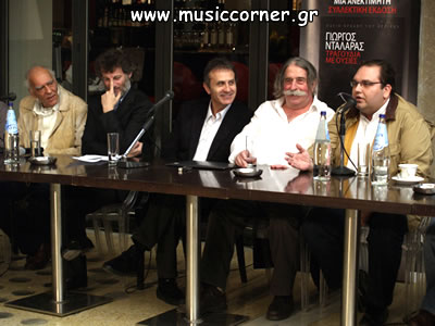 Ανάμεσα στο πλήθος των ανθρώπων που βρέθηκαν εκεί, διέκρινα τον ποιητή Μάνο Ελευθερίου, τον στιχουργό Λευτέρη Παπαδόπουλο καθώς και τον Λουδοβίκο των Ανωγείων. Μεγάλες προσωπικότητες της μουσικής κληρονομιάς του τόπου μας που θέλησαν να τιμήσουν τον Γιώργο Νταλάρα. Η παρουσίαση ξεκίνησε γύρω στις 13:30 και την σκυτάλη πήρε ο διευθυντής της δισκογραφικής εταιρείας Universal, Θάνος Καραγρηγόρης ο οποίος εξέφρασε την περηφάνια του για το τόλμημα αυτό, που ξεχωρίζει, όπως είπε, για την ποιότητα των εκτελέσεων αλλά και για τη συλλογή των κομματιών, τονίζοντας ότι έγινε από "μάστορες της αγοράς"! Σειρά να μιλήσει είχε ο πρωταγωνιστής της συνάντησης αυτής, Γιώργος Νταλάρας, που ξεκίνησε λέγοντας ότι για τον ίδιο που έχει μεγαλώσει μέσα στα μπουζούκια, άρα και ακραία υποκειμενικός, τα "τραγούδια με ουσίες" είναι τα ωραιότερα τραγούδια! Σε αυτά εκφράζεται καλλιτεχνικά καλύτερα απ' όλα, μολονότι τόνισε ότι δεν έχει καμία σχέση με όσα περιεργάζονται οι στίχοι... Συμπλήρωσε λέγοντας ότι το cd αυτό, το να τραγουδήσει κάποτε για "ουσίες", ήταν όνειρο ζωής που άργησε 25 χρόνια αλλά τελικά πραγματοποιήθηκε. Αναφέρθηκε επίσης στο μεγάλο πλούτο των κομματιών εκείνων που αναφέρονται έμμεσα ή άμεσα σε ουσίες, καθώς πλέον ξεπερνούν τα 2000, στην ανάγκη του να μάθει την ιστορία τους αλλά και το τι ήταν αυτό που κάνει τους ανθρώπους να τα τραγουδάνε. Είναι κομμάτια που γράφτηκαν από άτομα που έζησαν στο περιθώριο, που βίωσαν διωγμούς, πολέμους, δικτατορία, πόνο και σε αυτά τα τραγούδια έβρισκαν παρηγοριά βγάζοντας τον καημό τους... Ολοκλήρωσε λέγοντας ότι αισθάνθηκε χρέος, μέσω αυτού του δίσκου, να τιμήσει αφενός τους δημιουργούς αυτούς αλλά και την ίδια του την οικογένεια και αφετέρου ηθική υποχρέωση να ακουστούν τα τραγούδια από νεότερες γενιές. Ακολούθησαν με τη σειρά τους και οι υπόλοιποι συντελεστές, όπου όλοι εξέφρασαν την χαρά και την τιμή τους που συμμετέχουν στη δημιουργική και τολμηρή αυτή καλλιτεχνική προσπάθεια. Κλείνοντας, παραθέτω μια φράση που ειπώθηκε από τον "ερευνητή" και πρωτομάστορα αυτού του cd Παναγιώτη Κουνάδη που νομίζω ότι περιλαμβάνει και όλη την ...ουσία: "Πρόκειται για ΜΙΑ ΣΠΑΝΙΑ ΕΚΔΟΣΗ-ΑΠΟΚΤΗΜΑ, ΓΙΑ ΤΟ ΑΝΑΦΑΙΡΕΤΟ ΔΙΚΑΙΩΜΑ ΤΟΥ ΤΡΑΓΟΥΔΙΟΥ ΝΑ ΜΙΛΑΕΙ ΓΙΑ ΤΑ ΑΝΘΡΩΠΙΝΑ ΠΑΘΗ. ΜΙΑ ΕΚΔΟΣΗ ΠΟΥ ΣΠΑΕΙ ΤΑ ΟΡΙΑ ΤΟΥ ΚΑΘΩΣΠΡΕΠΙΣΜΟΥ"! Περισσότερες φωτογραφίες από το event