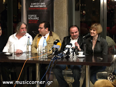 Δεν έχει μια βδομάδα που κυκλοφόρησε το νέο διπλό cd του Γιώργου Νταλάρα και ήδη έγινε χρυσό! Χτες (16/4) το μεσημεράκι, κάπου στο κέντρο της Αθήνας, έγινε η παρουσίαση της νέας αυτής δουλειάς αλλά και η απονομή του χρυσού δίσκου στους συντελεστές της. Πρόκειται για ένα διπλό άλμπουμ με 50 σχεδόν τραγούδια που είναι ουσιαστικά το αποτέλεσμα της ζωντανής ηχογράφησης και μαγνητοσκόπησης των παραστάσεων «ΟΤΑΝ ΣΥΜΒΕΙ ΣΤΑ ΠΕΡΙΞ» (ΤΡΑΓΟΥΔΙΑ ΓΙΑ «ΤΣΙΛΙΕΣ ΚΑΙ ΜΙΑ ΝΥΧΤΕΣ») που δόθηκαν στις 4 και 5 Ιουλίου στο Ωδείο Ηρώδου Αττικού στα πλαίσια του ΦΕΣΤΙΒΑΛ ΑΘΗΝΩΝ 2007. Κυκλοφορεί με τον τίτλο "Τραγούδια με ουσίες" αλλά και "με ευαισθησίες, ιστορικές μνήμες και ήθος που καταγράφουν μια κοινωνική πραγματικότητα όπως αυτή διαμορφώθηκε από το 1920 ως τις μέρες μας, σε όλα τα είδη του αστικού τραγουδιού - σμυρναίικο, ρεμπέτικο, οπερέτα, επιθεώρηση, ελαφρό, λαϊκό, σύγχρονο, ροκ - που κάνουν χρήση «ουσιών»", όπως αναφέρει χαρακτηριστικά το δελτίο τύπου. Παρόντες ήταν δημοσιογράφοι όλων των μέσων, άνθρωποι της Τέχνης και της μουσικής και φυσικά όλοι όσοι συμμετείχαν στην υλοποίηση αυτού του μουσικού έργου. Συμπαραστάτες του Γιώργου Νταλάρα σε αυτό το αναμφίβολα δύσκολο εγχείρημα είναι ο Παναγιώτης Κουνάδης, που ανέλαβε το δύσκολο έργο της έρευνας και της επιλογής των τραγουδιών, ο Χρήστος Θηβαίος, που απουσίαζε γιατί βρισκόταν στο Λονδίνο, ο Μπάμπης Τσέρτος, ο Στέλιος Βαμβακάρης, η Νίνα Λοτσάρη, η Χαρά Κεφαλά, η Ασπασία Στρατηγού, ο Ζαχαρίας Καρούνης, ο Θέμης Σερμιέ, η Μάρθα Φριντζήλα και ο Ανδρέας Κατσιγιάννης, διευθυντής ορχήστρας της Εστουδιαντίνας που συμμετέχει στη δουλειά. Όλοι τους βρίσκονταν εκεί για να μιλήσουν για την καινούρια τους δουλειά.
