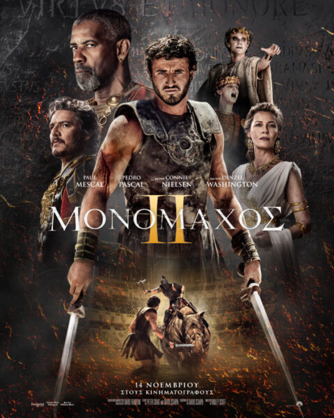 Ο «Μονομάχος ΙΙ» (“Gladiator II”) του σπουδαίου Ridley Scott έρχεται 24 χρόνια μετά από τον άμα τη εμφανίσει κλασικό «Μονομάχο» (“Gladiator”, 2000) να μάθει σε μια νέα γενιά θεατών τί σημαίνει επική ταινία. Όπως είναι φυσικό, τα πάντα είναι πλέον περισσότερα: απίστευτα εντυπωσιακά εφέ, χορταστικό θέαμα, πιο πολύ αίμα (που ώρες-ώρες θυμίζει εικόνες από βιντεοπαιχνίδια, χωρίς όμως στιγμή να γίνεται αντιαισθητικό), όλα μαεστρικά ενορχηστρωμένα από τον αειθαλή βρετανό σκηνοθέτη. Η άρτια τεχνικά και καλλιτεχνικά αυτή ταινία, δεν μπορεί –και νομίζω ούτε επιδιώκει– να συγκριθεί με την πρόγονό της. Ωστόσο «δανείζεται» από αυτήν ατάκες που έγραψαν κινηματογραφική ιστορία και αναδεικνύει με σεβασμό νέες πτυχές σε γνώριμους χαρακτήρες, όπως η Lucilla (Connie Nielsen), παρά το γενικά μάλλον σχηματικό σενάριο.