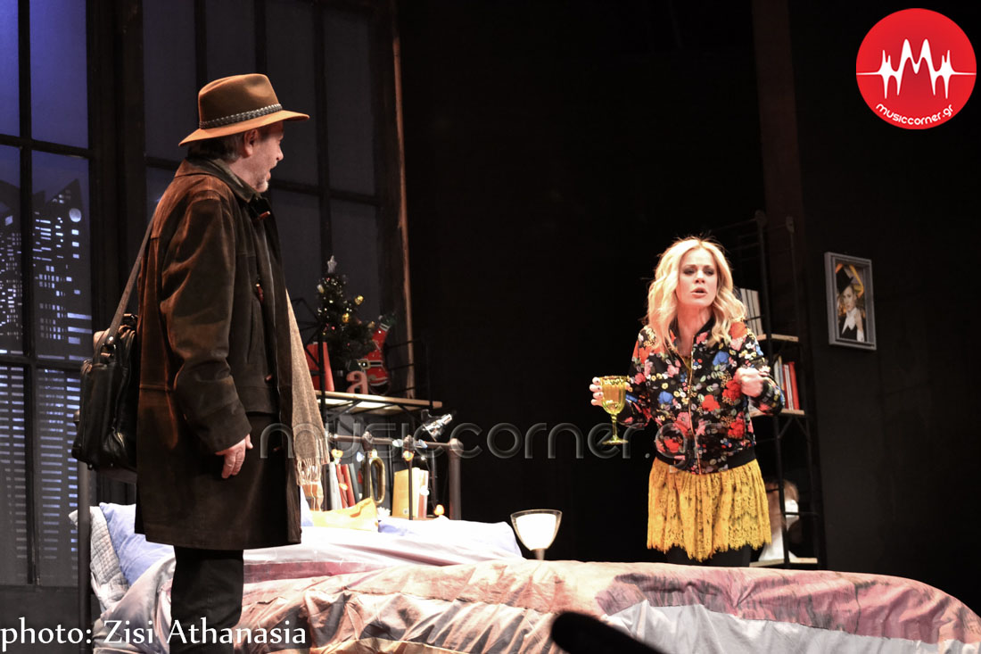 Η παράσταση μας μεταφέρει στο διαμέρισμα της πρωταγωνίστριας στη Νέα Υόρκη. Ένα μεγάλο κρεβάτι δηλώνει τον έρωτα και την ανάγκη για συντροφικότητα, ένα χριστουγεννιάτικο δέντρο αναβοσβήνει την πιο χαρούμενη και συνάμα πιο θλιβερή γιορτή του χρόνου, περούκες, χαρτιά και στυλό αναζητούν το μεγάλο ρόλο, το ρόλο της διαφυγής μιας μέτριας ζωής.